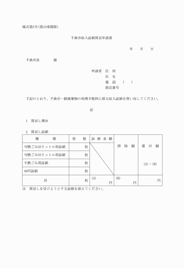 ○千曲市一般廃棄物の処理手数料に係る収入証紙に関する条例施行規則