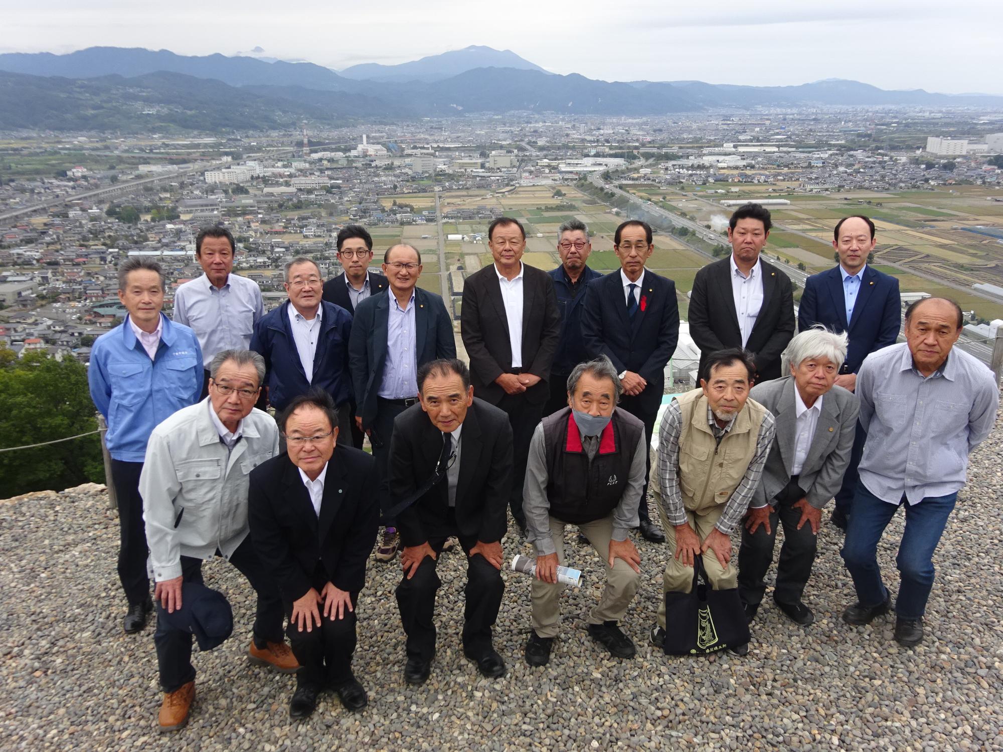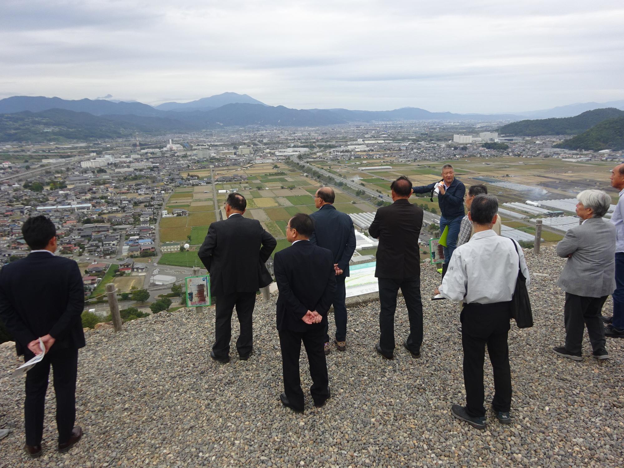 現地見学会では、森将軍塚古墳から、市道一重山2号線及び(仮称)屋代スマートICの計画線形全体を鳥瞰し、道路河川課及びNEXCO東日本の担当から現場状況の説明を受け、情報共有を行いました。